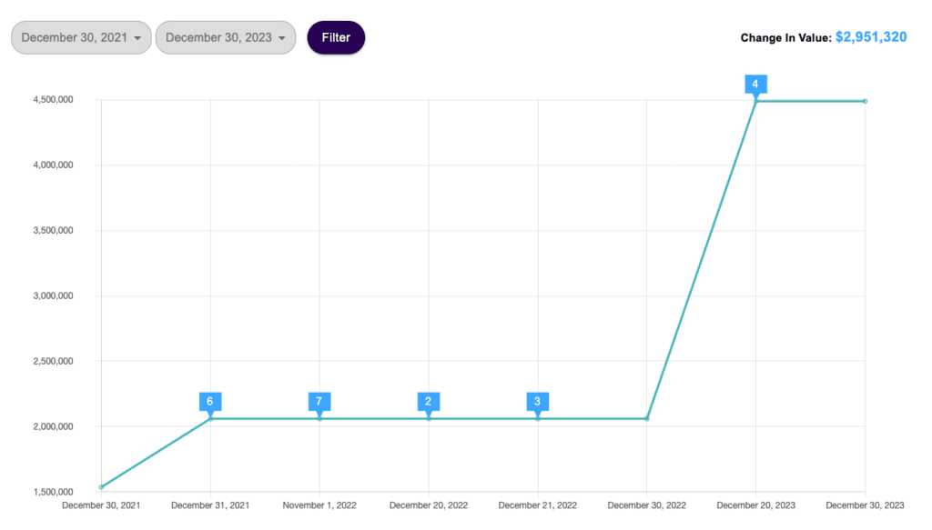 For greater clarity and focus, the time filter lets you view changes in your company’s value over specific time periods. By selecting a custom time interval, you can zoom in on key moments and analyze how your business’s value has evolved during that period. This feature also highlights the difference in value between the start and end of the selected timeframe, giving you a clear picture of growth, setbacks, or trends within your business.